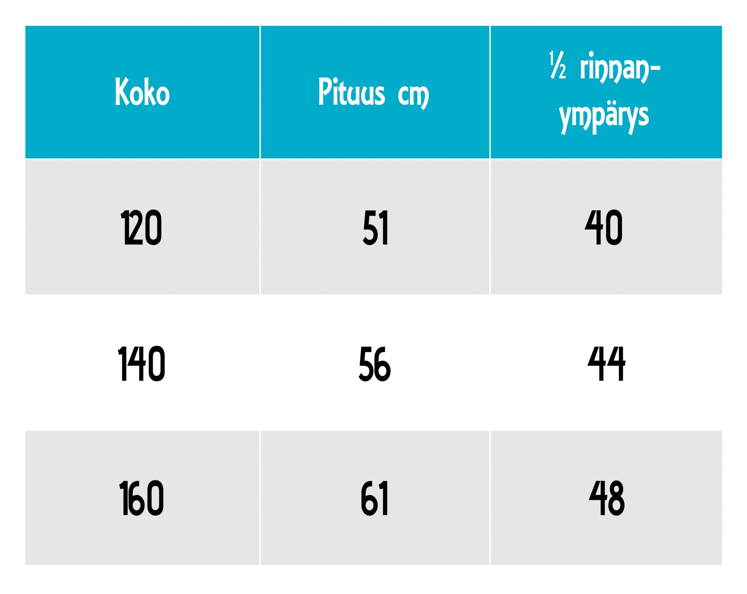 110/120 cm, 130/140 cm, 150/160 cm