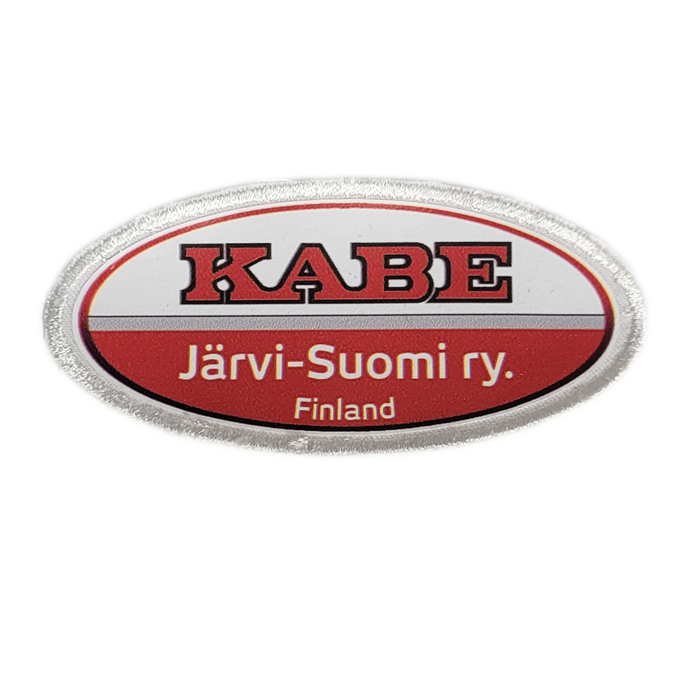 Irtomerkki painetulla logolla, ommeltava. Leveys n. 10 cm.