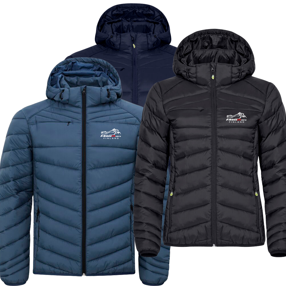 Lämmin mutta kevyt takki untuvaa muistuttavalla toppauksella. Valmistettu kierrätetystä polyamidista. Irrotettava huppu, 3 vetoketjullista ulkotaskua ja 2 sisätaskua. Joustavat resorit vyötäröllä ja hihoissa. Mukana värillinen ripustin, kätevä kuulokeratkaisu ja vetoketjun vedin.