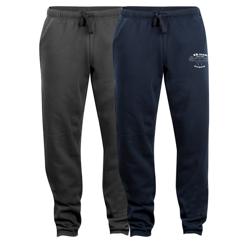 Collegehousut, joiden mitoitus sopii sekä miehille että naisille. Kiristysnauha vyötäröllä, lahkeensuissa kuminauhakiristys. Sopii täydellisesti yhteen Basic huppareiden ja collegepaitojen kanssa.