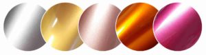 Musta, Valkoinen, Hopea, Kulta, Ruusukulta, Oranssi (metalli), Kirsikka (metalli)