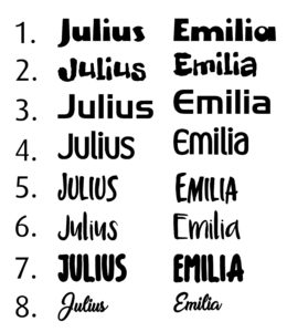 Huom! Painamme nimen/tekstin juuri siten, kun olet sen tilaukseen kirjoittanut. Varmista siis oikea kirjoitusasu. Tekstin maksimipituus 15 merkkiä